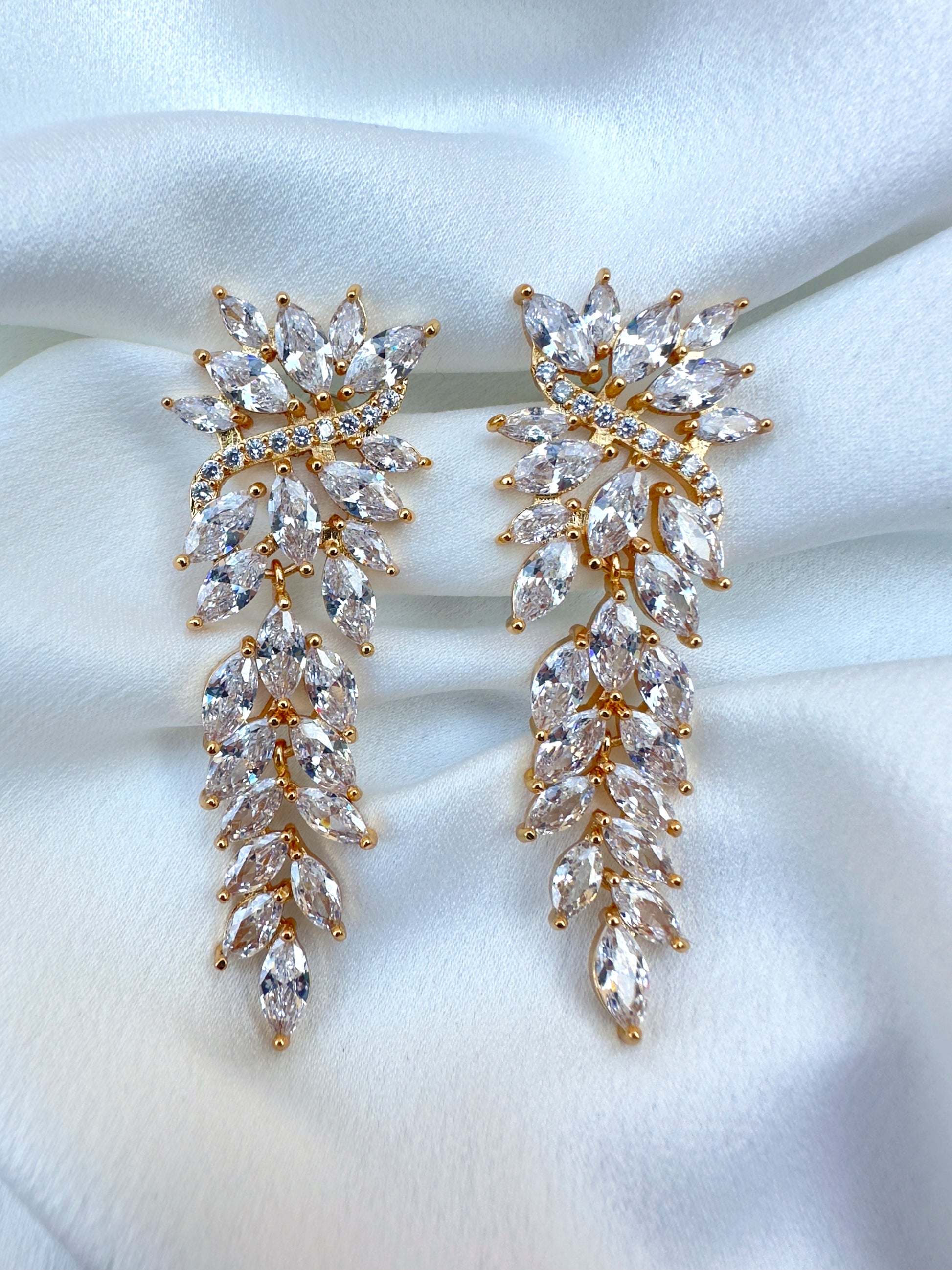 Cercei aurii Reyna cu cristale Cubic Zirconiu.