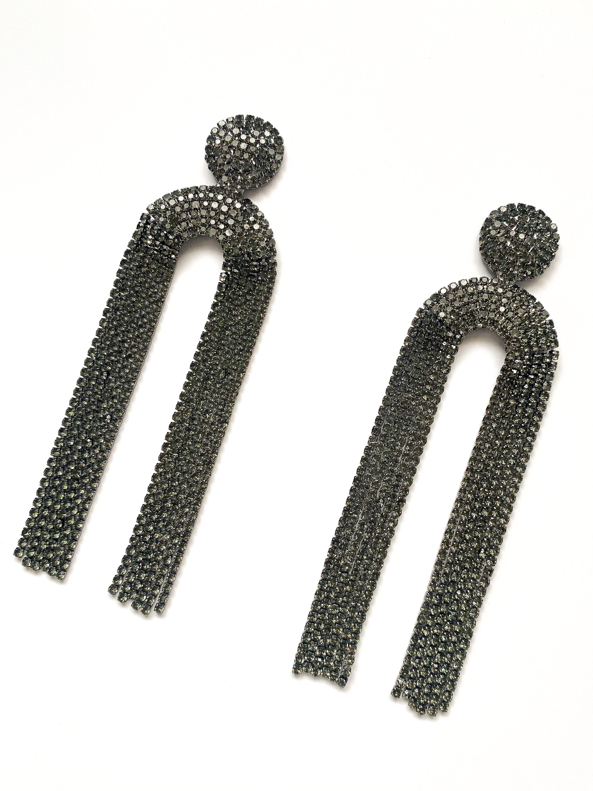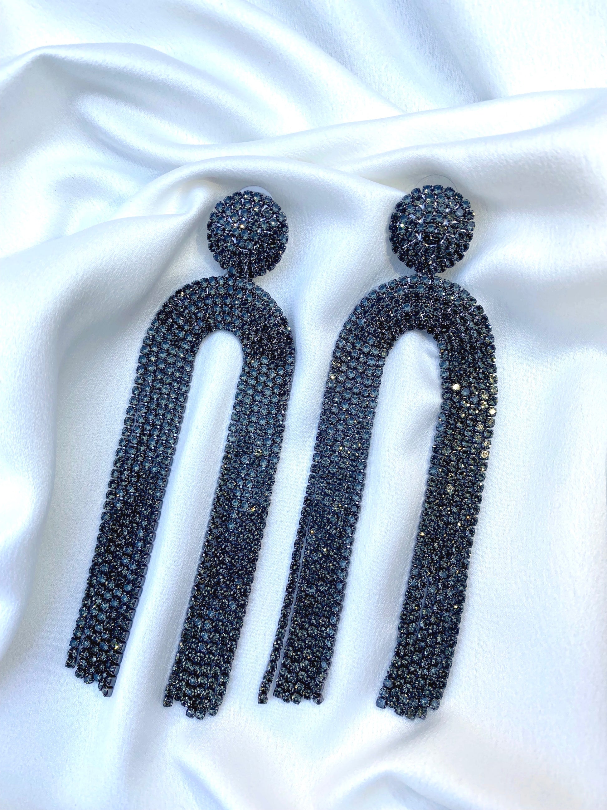 Cercei lungi Victoria decorați cu cristale gri antracit.