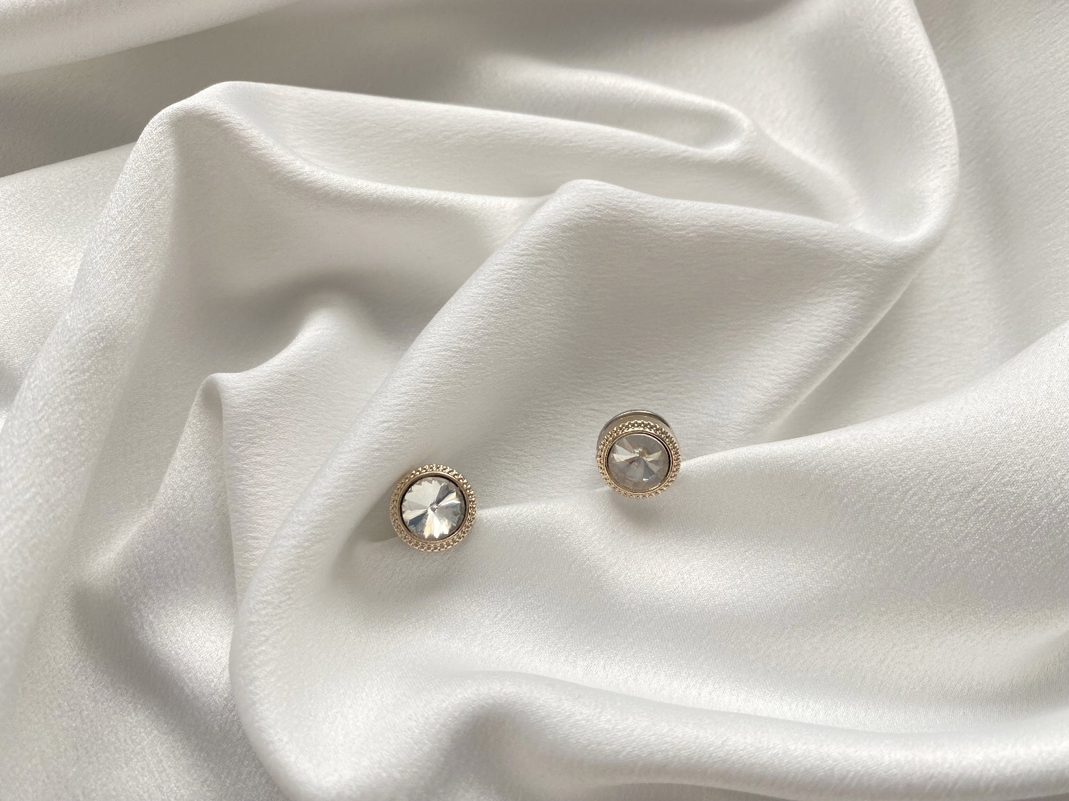 Set 2 pinuri Lucy, cu cristal, tip insigna, cu fluturaș de prindere.
